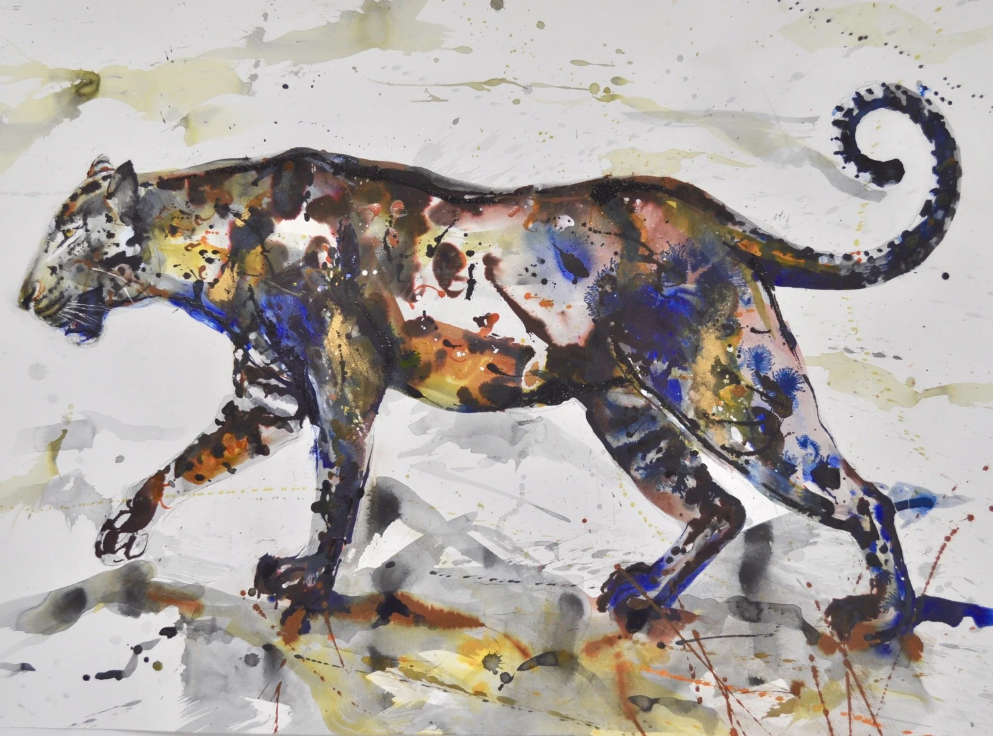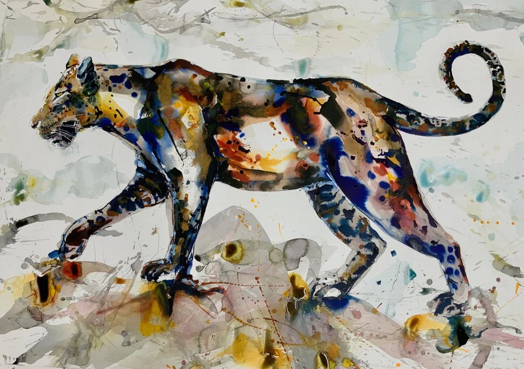 Bold colour, graphic form and expressive mark making elevate the animal beyond observation into icon. There are subtle echoes of ancient wall paintings and decorative motifs, where animals were depicted as enduring cultural and spiritual presences.